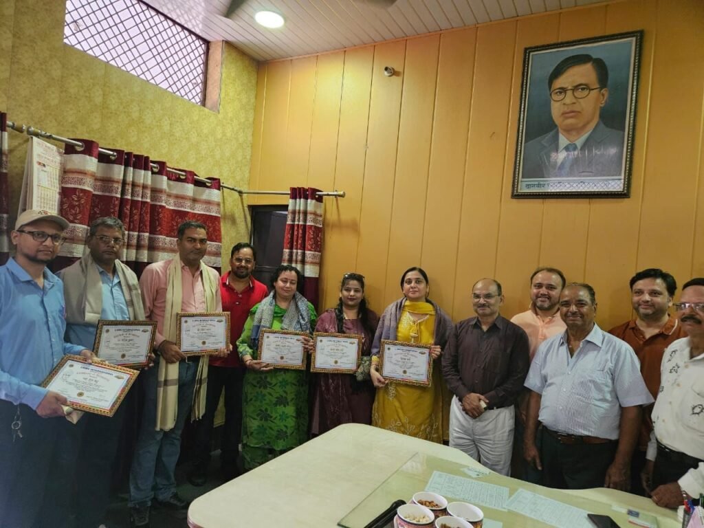 हरिद्वार। लायंस क्लब ग्रेटर द्वारा गुरुवार को डॉ. हरिराम आर्य इंटर कॉलेज में शिक्षकों के सम्मान में समारोह आयोजित किया गया। कार्यक्रम में लायंस क्लब द्वारा विद्यालय के उप प्रधानाचार्य प्रवीण त्यागी, डॉ. सरीन कुमार, निधि शर्मा, प्रियंका शर्मा, जागृति, पंडित श्रवण कुमार, यज्ञराज भट्ट को सम्मानित किया गया। इस अवसर पर विद्यालय के प्रधानाचार्य डॉ. अरविंद शर्मा ने कहा कि समाज को नई दिशा देने की जिम्मेदारी जहां शिक्षकों की है वहीं समाज को भी शिक्षकों के सम्मान और उनके हित के लिए आगे आना होगा। क्लब के पदाधिकारियों ने इस अवसर पर आश्वस्त किया कि वो शिक्षा और शिक्षक सम्मान के लिए कार्य करते रहेंगे। कार्यक्रम का संचालन दीपक मिश्रा ने किया। इस अवसर पर अनमोल यादव, राजेश कुमार, राजीव कौशिक, आशीष कुमार, नीरज कुमार, निशा कुमारी, संजय कुमार, लायंस क्लब ग्रेटर अध्यक्ष मेहुल सिंघल, सचिव विश्रांत शर्मा, कोषाध्यक्ष दीपक गर्ग, वरुण शर्मा, गौरव शर्मा, कार्तिक शर्मा, राजेश भार्गव, नीलू खन्ना, संजय खन्ना, जगमोहन कौशल आदि ने संबोधित किया।