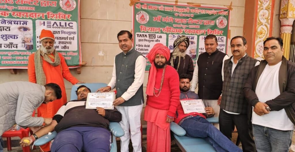 हरिद्वार। श्री बालाजी धाम, सिद्धबलि हनुमान नर्मदेश्वर महादेव मंदिर, जगजीतपुर कनखल के पावन प्रांगण में रविवार को महंत स्वामी आलोक गिरी महाराज की प्रेरणा व मां गंगे ब्लड बैंक सेंटर, नेत्रधाम आई हास्पिटल, एचईएएलआईसी (हेलिक) हास्पिटल के सहयोग से एक विशाल निःशुल्क चिकित्सा एवं रक्तदान शिविर का सफलतापूर्वक आयोजन किया गया। शिविर में बड़ी संख्या में क्षेत्रवासियों ने सहभागिता करते हुए चिकित्सकीय परीक्षण कराया तथा स्वेच्छा से रक्तदान कर मानव सेवा के इस पुण्य कार्य में अपना महत्वपूर्ण योगदान प्रदान किया। कार्यक्रम के मुख्य अतिथि रानीपुर विधायक आदेश चौहान ने कहा कि रक्तदान महादान है, खास बात यह है कि रक्तदान करने वाले व्यक्ति को भी नहीं पता होता है कि उसका रक्त किसके जीवन की रक्षा में काम आ रहा है। उन्होंने कहा महंत आलोक गिरी का प्रयास सराहनीय है। मां गंगे ब्लड सेंटर बैंक सेंटर के प्रभारी एनएस नेगी ने कहा कि शिविर में विशेषज्ञ चिकित्सकों द्वारा प्रतिभागियों की स्वास्थ्य जांच कर आवश्यक परामर्श एवं दिशा-निर्देश प्रदान किए गए। वहीं करीब 30 युनिट ब्लड एकत्र किया गया। कार्यक्रम संयोजक महंत आलोक गिरी महाराज ने कहा कि आयोजन का मुख्य उद्देश्य समाज के वंचित एवं जरूरतमंद वर्गों तक स्वास्थ्य सेवाएं पहुंचाना, जनस्वास्थ्य के प्रति जागरूकता बढ़ाना तथा रक्तदान जैसे जीवनदायी कार्य को प्रोत्साहित करना रहा। कार्यक्रम के दौरान सेवाभाव, अनुशासन एवं सामाजिक उत्तरदायित्व की भावना स्पष्ट रूप से परिलक्षित हुई। शिविर में पत्रकार शिवांग अग्रवाल, पं शशि भारद्वाज, सहित अन्य लोगों ने रक्तदान किया।