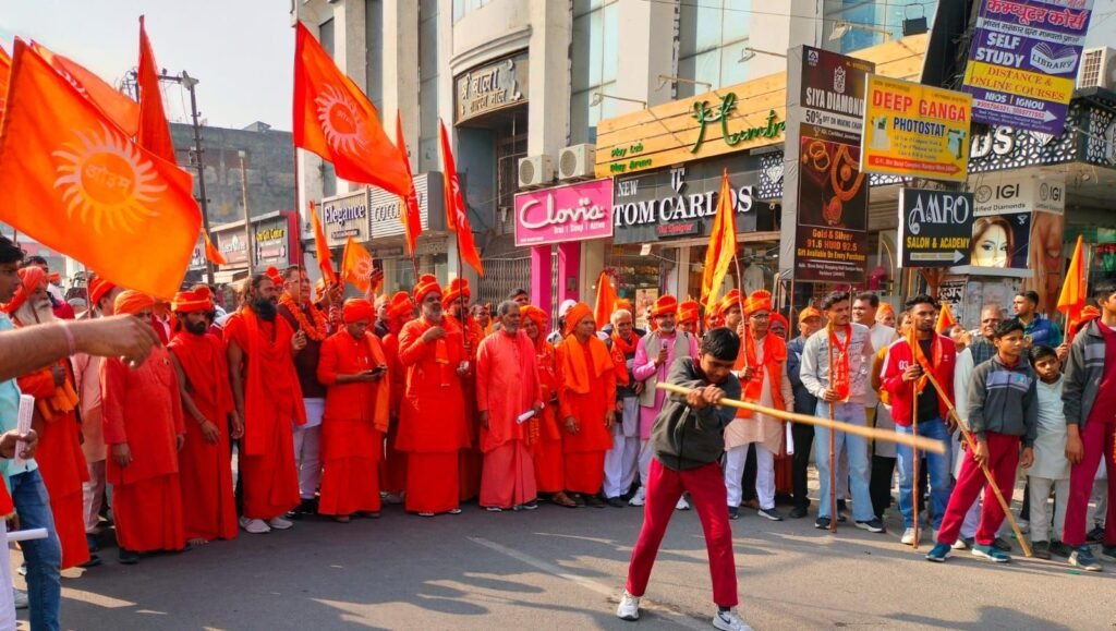 हाथों में ओम के झंडे लेकर निकले आर्य समाजी