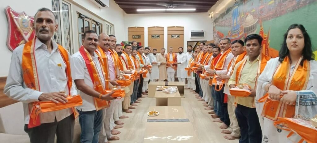 हरिद्वार। भारतीय जनता पार्टी के जिला अध्यक्ष आशुतोष शर्मा ने नव नियुक्त जिला कार्यकारिणी के पदाधिकारियों के साथ गंगा पूजन कर मां गंगा जी का आशीर्वाद प्राप्त किया। गंगा सभा के अध्यक्ष नितिन गौतम और महामंत्री तन्मय वशिष्ठ ने जिला अध्यक्ष आशुतोष शर्मा और नव नियुक्त भाजपा जिला कार्यकारिणी का गंगा सभा की ओर से स्वागत और अभिनंदन किया। इस अवसर पर जिला अध्यक्ष आशुतोष शर्मा ने जिला भाजपा हरिद्वार की नवनियुक्त जिला कार्यकारिणी को संबोधित करते हुए कहा कि मुझे पूरा विश्वास है कि आप लोग भारतीय जनता पार्टी की रीति और नीति को लेकर लोगों की बीच जाएंगे और भारतीय जनता पार्टी की केंद्र और राज्य सरकार की उपलब्धियों को जनता को बताएंगे मुख्यमंत्री पुष्कर सिंह धामी के नेतृत्व में गरीब, किसान, मजदूर, पिछड़े, सभी वर्गों का विकास कर रही है। गंगा सभा अध्यक्ष नितिन गौतम ने कहा कि भाजपा की नवनियुक्त कार्यकारिणी पर मां गंगा का आशीर्वाद बना रहे और उनका भविष्य उज्जवल हो ऐसी मां गंगा से कामना करते हैं, उन्होंने विश्वास जताया कि नवनियुक्त कार्यकारिणी ईमानदारी और मेहनत से अपना काम करेगी। इस अवसर पर जिला उपाध्यक्ष लव शर्मा, दीपेंद्र चौधरी, जिला महामंत्री हीरा सिंह बिष्ट, संजीव चौधरी, जिला मंत्री रितु ठाकुर, पारुल चौहान, विनीत जोली, भूप सिंह, जिला कोषाध्यक्ष अरविंद कुशवाह, जिला कार्यालय मंत्री नकली राम सैनी, जिला मीडिया संयोजक धर्मेंद्र सिंह चौहान, जिला आईंटी संयोजक उमेश पाठक, जिला सोशल मीडिया संयोजक मनोज शर्मा, जिला सोशल मीडिया सह संयोजक शिवम त्यागी, अरविंद चौधरी, चन्दकिरण आदि उपस्थित रहे।