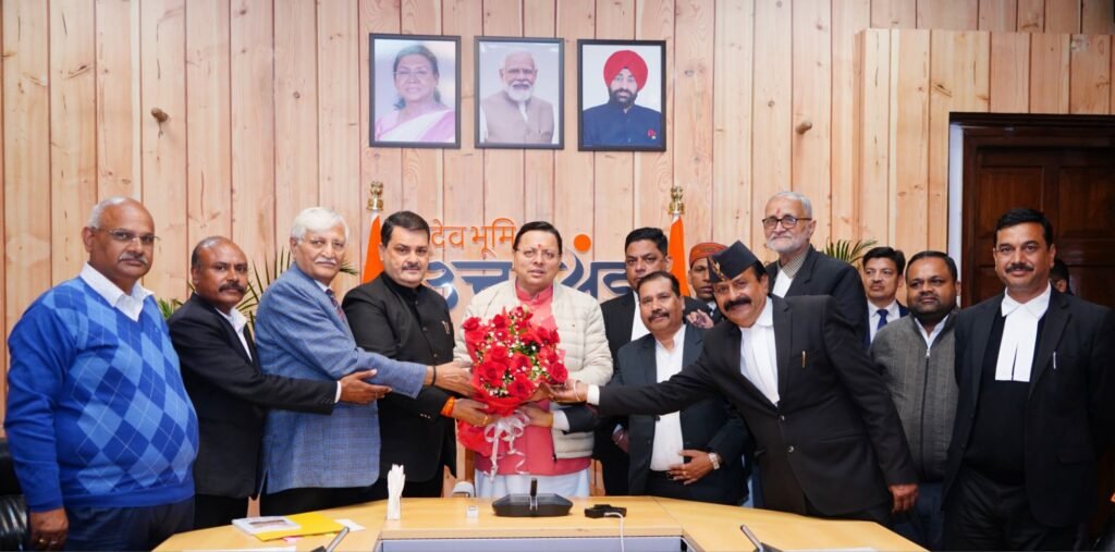 उत्तराखण्ड / देहरादून। मुख्यमंत्री पुष्कर सिंह धामी से अध्यक्ष संघर्ष समिति बार एसोसिएशन प्रेमचंद शर्मा एवं अध्यक्ष बार एसोसिएशन देहरादून मनमोहन कंडवाल के नेतृत्व में संगठन के पदाधिकारियों ने भेंट की। उन्होंने नए जिला न्यायालय परिसर में अधिवक्ताओं हेतु आवंटित भूमि पर तथा पुराने जिला जजी परिसर की भूमि अधिवक्ताओं के पक्ष में आबंटित करने व दोनों स्थानों पर सरकार द्वारा अधिवक्ताओं के चैंबरों के निर्माण कराए जाने संबंधी ज्ञापन सौंपा।