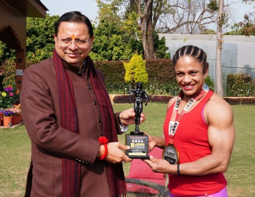 मुख्यमंत्री धामी ने बॉडी बिल्डर प्रतिभा थपलियाल को किया सम्मानित…