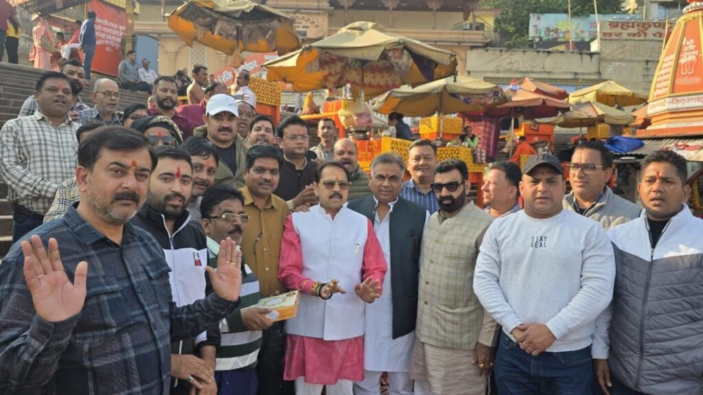 हरिद्वार। प्रांतीय नगर उद्योग व्यापार मंडल के जिला अध्यक्ष विशाल गर्ग ने नवनियुक्त जिला कार्यकारिणी के साथ हरकी पैड़ी पर गंगा पूजन एवं दुग्धाभिषेक कर मां गंगा से आशीर्वाद लिया। श्री गंगा सभा के अध्यक्ष नितिन गौतम ने गंगा पूजन करने हरकी पैड़ी पहुंची जिला कार्यकारिणी का फूलमाला पहनकर स्वागत किया।