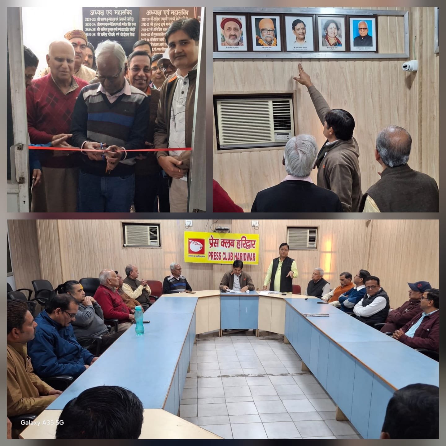 हरिद्वार। प्रेस क्लब एवं भारतीय संवाद परिषद के तत्वाधान में प्रेस क्लब की कार्यकारिणी द्वारा 1986 से 2025 तक के अध्यक्षों के सभागार में लगाए गए चित्रों का लोकार्पण वरिष्ठ पत्रकार डॉ.शिवशंकर जायसवाल, कौशल सिखौला एवं गोपाल रावत ने संयुक्त रूप से किया। प्रेस क्लब की कार्यकारिणी द्वारा यह भी निर्णय लिया गया कि पत्रकारिता के क्षेत्र में अनुकरणीय योगदान देने वाले स्वर्गीय वरिष्ठ पत्रकार डॉ.कमलकांत बुधकर की स्मृति में प्रेस क्लब सभागार का नामकरण बुद्धकर भवन के रूप में किया जाएगा। प्रेस क्लब अध्यक्ष धर्मेंद्र चौधरी एवं महामंत्री दीपक मिश्रा ने कहा कि पत्रकारिता में स्वर्गीय कमलकांत बुधकर के अनुकरणीय योगदान को भुलाया नहीं जा सकता है। उनके आदर्शों पर चलकर पत्रकारिता मिशन को अच्छे से निभाएं। उन्होंने कहा कि प्रेस क्लब में होली मिलन कार्यक्रम भी उत्साह पूर्वक मनाया जाएगा। वरिष्ठ पत्रकार डा.शिवशंकर जायसवाल एवं आदेश त्यागी ने प्रेस क्लब के पूर्व अध्यक्षों के चित्र भवन में लगाने के निर्णय का स्वागत करते हुए कहा कि प्रेस क्लब के माध्यम से पत्रकारों के हितों में निर्णायक निर्णय लिए जाते हैं। स्वर्गीय कमलकांत बुधकर की स्मृति में प्रेस क्लब सभागार का नाम बुद्धकर भवन किया जाना सराहनीय है। इस दौरान कोषाध्यक्ष काशीराम सैनी, कौशल सिखौला, गोपाल रावत, रमेश खन्ना, रजनीकांत शुक्ला, सुभाष कपिल, बालकृष्ण शास्त्री, बृजेंद्र हर्ष, अविक्षित रमन, प्रदीप गर्ग, आदेश त्यागी, दीपक नौटियाल, संजय आर्य, अमित शर्मा, अमित गुप्ता, आदि मौजूद रहे।