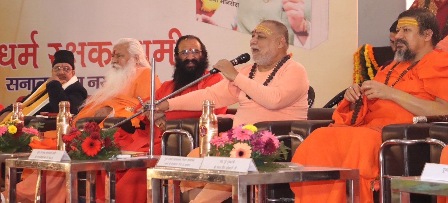 हरिद्वार। राष्ट्र संचालन के लिए धर्म नीति का होना आवश्यक है, धर्म की रक्षा होगी तभी राष्ट्र सुरक्षित रहेगा। राष्ट्र-राज्य की सुरक्षा को चुनौती दे रही जिहादी मानसिकता को समाप्त करने में जिस तरह मुख्यमंत्री पुष्कर सिंह धामी ने ताबड़ तोड़ कार्यवाही की है, उसे डॉ. सोनाली मिश्रा व रीना मानसेरा ने लिपिबद्ध कर सहरानीय कार्य किया है। यह उद्गगार सनातन सद्भावना समिति द्वारा आयोजित कार्यक्रम में जगतगुरु शंकराचार्य स्वामी राजराजेश्वराश्रम महाराज ने धर्म रक्षक धामी पुस्तक के विमोचन अवसर पर ऋषिकुल सभागार में दिए।