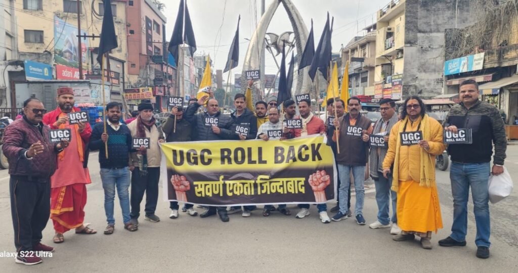 हरिद्वार। यूजीसी कानून का विरोध करते हुए श्री अखंड परशुराम अखाड़े के अध्यक्ष पंडित अधीर कौशिक के नेतृत्व में स्वर्ण समाज के लोगों ने जनजागरण अभियान चलाते हुए व्यापारियों के प्रतिष्ठान पर पहुंचकर कानून की विसंगतियों से अवगत कराया। पंडित अधीर कौशिक ने कहा कि शिक्षा के क्षेत्र में इस तरह का कानून भेदभाव को बढ़ाएगा। सरकार को जल्द से जल्द इस काले कानून को वापस लेना चाहिए। जात पात का भेदभाव किसी भी सूरत में बर्दाश्त नहीं किया जाएगा। पंडित अधीर कौशिक ने कहा कि विश्वविद्यालयों में शिक्षा ग्रहण करने वाले विद्यार्थियों के भविष्य से खिलवाड़ नहीं होने देंगे। सरकार को कानून वापस लेना चाहिए। उन्होंने कहा कि इस कानून से छात्रों का जीवन अंधकार में चला जाएगा। स्वर्ण समाज को खुलकर इस कानून का विरोध करना चाहिए। भागवताचार्य पंडित पवन कृष्ण शास्त्री एवं संजय शर्मा ने कहा कि समान रूप से शिक्षा के अवसर सभी को प्राप्त होने चाहिए। कानून सुरक्षा और रक्षा के लिए बनाए जाते हैं। लेकिन इस कानून में भेदभावपूर्ण नीति अपनायी जा रही है। जिसे बर्दाश्त नहीं किया जाएगा। सरकार को स्वर्ण समाज के हितों में फैसला लेते हुए इस कानून को तत्काल वापस लेना चाहिए। भागवताचार्य पंडित पवन कृष्ण शास्त्री, संजय शर्मा, ऋषि शर्मा, मनोज शुक्ला, रमेश पांडे, यशपाल शर्मा, नमन मिश्रा, मोनू, नरेश, शंभू प्रसाद पंत, बृजमोहन शर्मा, विष्णु गौड़, बालकृष्ण शास्त्री, आशीष मेहता, राकेश एडवोकेट, आदेश मारवाड़ी, संदीप मेहता, विक्रम ठाकुर आदि शामिल रहे।