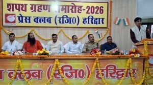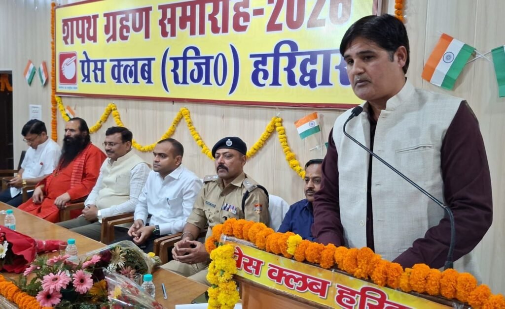 हरिद्वार। प्रेस क्लब हरिद्वार के नवनिर्वाचित अध्यक्ष धर्मेंद्र चौधरी, महामंत्री सूर्यकांत बेलवाला एवं नवनिर्वाचित कार्यकारिणी का शपथ ग्रहण समारोह प्रेस कलब हरिद्वार सभागार में आयोजित किया गया। मुख्य सचिव आनंद वर्द्धन ने प्रेस क्लब के नवनिर्वाचित अध्यक्ष धर्मेंद्र चौधरी, महामंत्री सूर्यकांत बेलवाल को पद एवं गोपनीयता की शपथ दिलायी। शपथ ग्रहण समारोह का शुभारंभ मुख्य सचिव आनंद बर्द्धन, अखाड़ा परिषद अध्यक्ष श्रीमहंत रविंद्रपुरी, जिलाधिकारी मयूर दीक्षित, एसएसपी नवनीत सिंह भुल्लर, नवनिर्वाचित प्रेस क्लब अध्यक्ष धर्मेंद्र चौधरी, महामंत्री सूर्यकांत बेलवाल, पूर्व महामंत्री दीपक मिश्रा ने संयुक्त रूप से दीप प्रज्वलित कर किया।