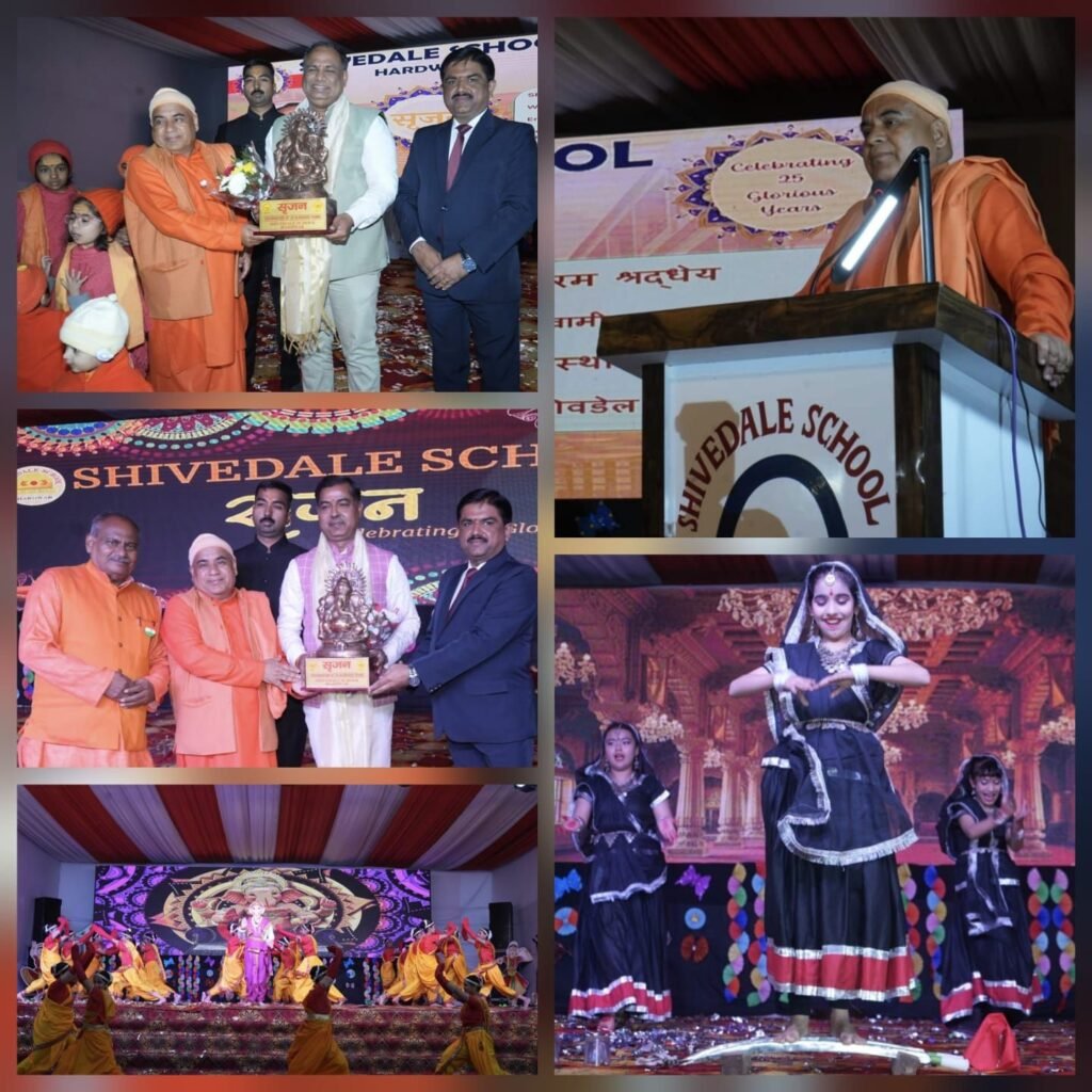 हरिद्वार। शिवडेल स्कूल जगजीतपुर का दो दिवसीय रजत जयंती समारोह “सृजन” बड़े ही उत्साह के साथ संपन्न हुआ। दूसरे दिन के कार्यक्रम की शुरुआत स्वामी शरदपुरी ने स्थानीय विधायक आदेश चौहान, स्वामी केशवानंद, स्वामी रामानंद पुरी तथा जितेन्द्र रघुवंशी द्वारा संयुक्त रूप से दीप प्रज्ज्वलित कराकर किया। स्वागत गीत के साथ ही बच्चों ने मनमोहक सांस्कृतिक कार्यक्रम प्रस्तुत किए। इस दो दिवसीय कार्यक्रम में नर्सरी से लेकर कक्षा 12 के बच्चों की प्रस्तुतियों की उपस्थिति जन समुदाय ने भूरि-भूरि प्रशंसा की। शनिवार की जिन प्रस्तुतियों ने जन समुदाय को विशेष रूप से प्रभावित किया उनमें प्रमुख रूप से नन्हे सितारे नृत्य, खेल के रंग, नृत्य के संग, एकता में विविधता, हमारो उत्तराखंड, नारी शक्ति अनंत शक्ति का रूप, योगिक समरसता, वंदे मातरम्, माँ शक्ति बुराई पर अच्छाई की विजय, एकलव्य सच्चा शिष्य, गंगा अवतरण, चार युगों की दिव्य यात्रा, राजस्थान से गुजरात तक, आत्मरक्षा प्रदर्शन, राम आए अयोध्या रामायण अभिनय, योग शरीर और आत्मा का संतुलन, महिषासुर मर्दिनी अभिनय, ऑपरेशन सिंदूर तथा शिव को समर्पित सृष्टि और विनाश का नृत्य प्रमुख हैं।