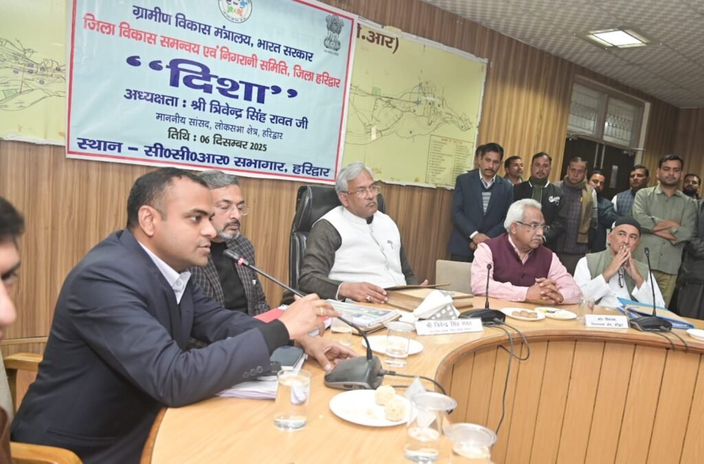 हरिद्वार। लोक सभा सांसद त्रिवेन्द्र सिंह रावत की अध्यक्षता में मेला नियत्रण कक्ष सीसीआर के सभा कक्ष में जिला विकास समन्व्य एवं निगरानी समिति (दिशा) की बैठक आयोजित की गई जिसमें विभिन्न विभागों के माध्यम से केन्द्र सरकार द्वारा संचालित जल कल्याणकारी योजनाओं की विभागवार समीक्षा की गई तथा पूर्व बैठक में दिए गये निर्देशों में की गई कार्यवाही की विभागवार समीक्षा की गई।