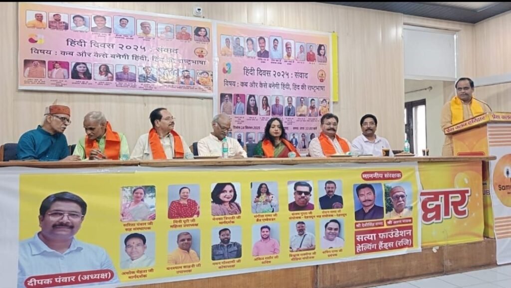 उपरोक्त विचार उत्तराखंड संस्कृत विश्वविद्यालय के कुलपति प्रो. दिनेश चंद्र शास्त्री ने सत्या फाउंडेशन तथा संवाद की ओर से हरिद्वार प्रेस क्लब के सभागार में आयोजित ‘कब और कैसे बनेगी हिंदी, हिंद की राष्ट्रभाषा’ विषय विचार गोष्ठी में मुख्य अतिथि के रूप में कार्यक्रम को संबोधित करते हुए हुए व्यक्त किये। कार्यक्रम का आयोजन राष्ट्रीय हिंदी दिवस के उपलक्ष में किया गया था। कार्यक्रम में हिंदी विषयक कवि सम्मेलन का आयोजन किया गया तथा पूर्व शिक्षिका तथा कवियित्री नीता नय्यर ‘निष्ठा’ की पुस्तक ‘कहाँ है निष्ठा’ का लोकार्पण भी सम्पन्न हुआ। सभी कवियों को ‘संवाद काव्यश्री सम्मान’ से विभूषित किया गया। साथ ही वरिष्ठ कवियित्री तथा पूर्व शिक्षिका श्रीमति नीता नय्यर ‘निष्ठा’ की नव प्रकाशित पुस्तक ‘कहाँ है निष्ठा’ का लोकार्पण भी किया जायेगा। कार्यक्रम की अध्यक्षता सत्या फाउंडेशन के संरक्षक देवीसिंह राणा ने की, जबकि, संचालन अरुण कुमार पाठक ने किया।