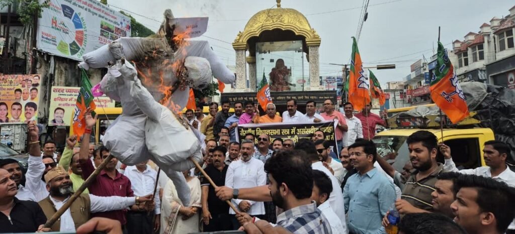 हरिद्वार। शुक्रवार को भारतीय जनता पार्टी जिला हरिद्वार ने कांग्रेस पार्टी के विधायकों द्वारा मानसून सत्र गैरसैंण में संपन्न विधानसभा सत्र के दौरान अमर्यादित व्यवहार किए जाने एवं लोकतांत्रिक मूल्यों की हत्या किए जाने के विरुद्ध कांग्रेस पार्टी के खिलाफ विरोध प्रदर्शन कर पुतला दहन किया।