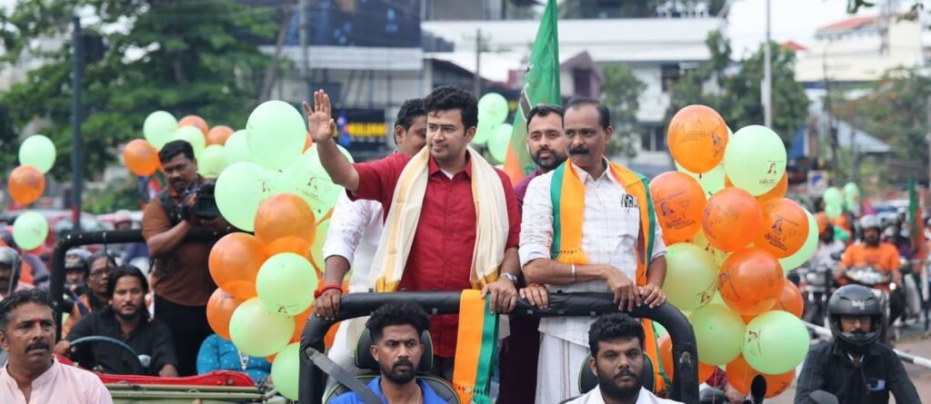 शुक्रवार को भारतीय जनता युवा मोर्चा के राष्ट्रीय अध्यक्ष तेजस्वी सूर्या ने केरल की वट्टीयूरकावु विधानसभा सीट से भाजपा प्रत्याशी आर. श्रीलेखा के समर्थन में मतदान की अपील की। श्रीलेखा पूर्व में केरल की पहली महिला आईपीएस अधिकारी और पूर्व डीजीपी रह चुकी हैं।