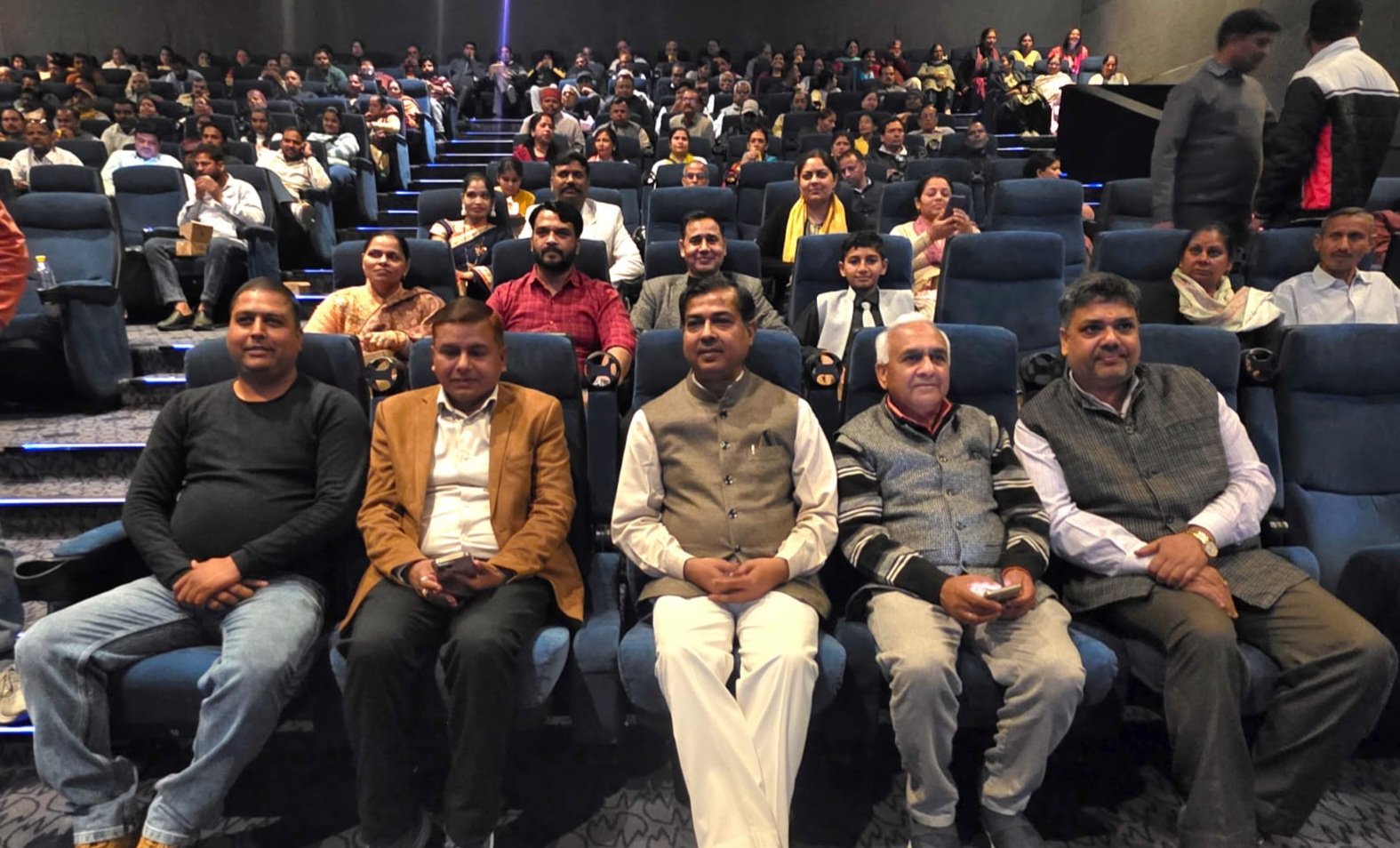 विधायक आदेश चौहान के नेतृत्व में कार्यकर्ताओं ने सिनेमाघर में देखी फिल्म गोदान …
