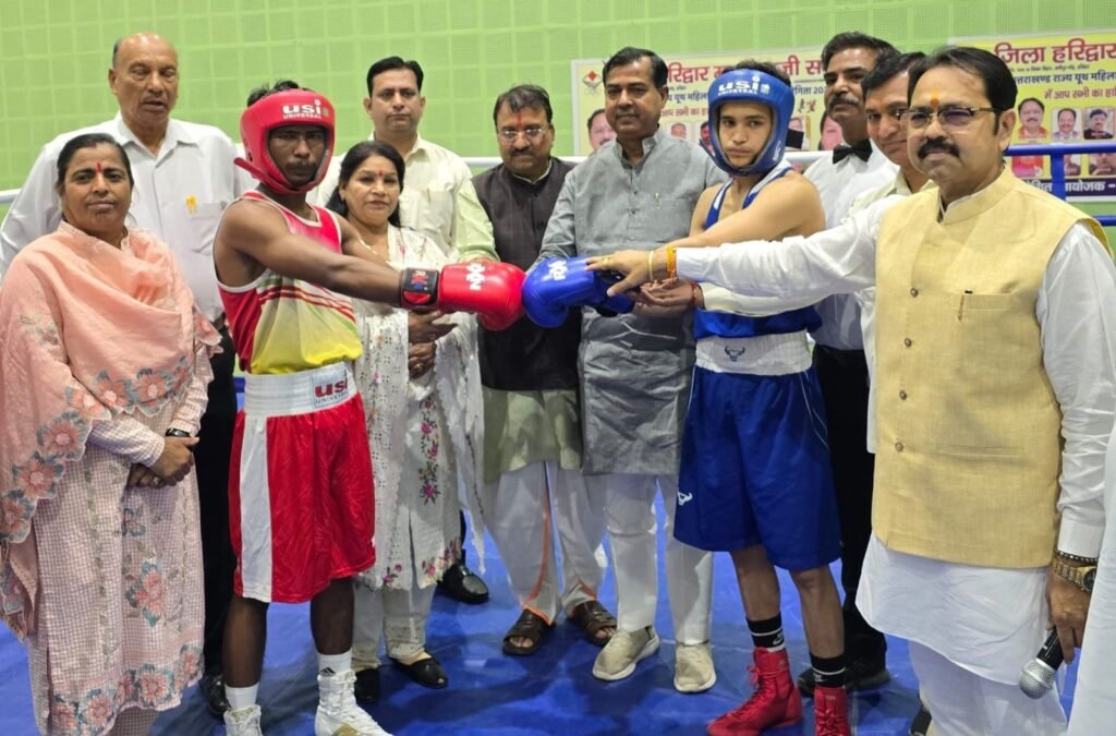 हरिद्वार। रोशनाबाद स्थित योग स्थली स्पोर्टस स्टेडिम में आयोजित राज्य स्तरीय यूथ बॉक्सिंग प्रतियोगिता का शुभारंभ रानीपुर विधायक आदेश चौहान व मेयर किरण जैसल ने किया। बालक एवं बालिका वर्ग में आयोजित तीन दिवसीय प्रतियोगिता में प्रदेश के 10 जिलों व 10 स्पोर्टस कालेज की टीमों के 154 खिलाड़ी प्रतिभाग कर रहे हैं। जिनमें 97 बालक एवं 57 बालिकाएं शामिल हैं। प्रतियोगिता का उद्घाटन मैच स्पोर्ट्स कालेज पिथौरागढ़ एवं साईं ट्रेनिंग काशीपुर के बीच खेला गया।