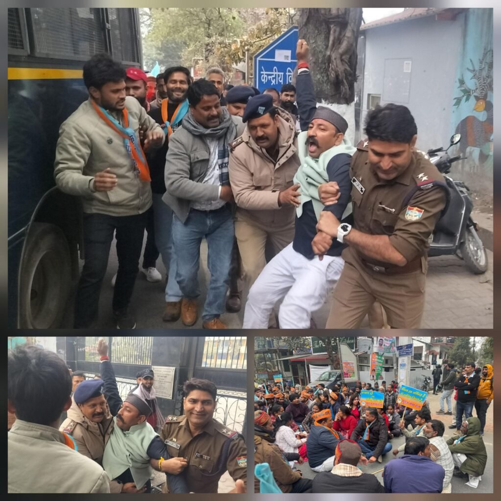 देहरादून। शनिवार को उत्तराखंड की बेटी अंकिता को न्याय दिलाने तथा अंकिता हत्याकांड की सीबीआई जांच की मांग को लेकर सुराज सेवा दल के प्रदेश अध्यक्ष श्री रमेश चन्द्र जोशी जी के नेतृत्व में संगठन के सैकड़ों कार्यकर्ता देहरादून स्थित परेड ग्राउंड में एकत्रित हुए। इसके पश्चात सभी कार्यकर्ताओं ने संगठित रूप से मुख्यमंत्री आवास की ओर कूच कर शांतिपूर्ण धरना-प्रदर्शन किया।