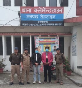 देहरादून। दिनांक 21/2/26 को श्री रवींद्र कुमार बेडवाल बन क्षेत्राधिकार आशा रोडी रेंज द्वारा था क्लेमेंटाउन में तहरीर दी की वैभव गौड़ पुत्र शिव प्रसाद सिंह निवासी चोला चंद्रमणि थाना पटेल नगर देहरादून उम्र 28 वर्ष तथा सावेज शाह पुत्र अकरम शाह निवासी माजरा थाना पटेल नगर देहरादून उम्र 27 वर्ष ने मिलकर वन क्षेत्राधिकारी आशा रोड़ी रेंज कार्यालय में तोड़फोड़ मारपीट व गालीगालोज कर राजकीय कार्य में बाधा डाली गई तथा कार्यालय में खड़ी गाड़ियो में तोड़फोड़ की गई जिस पर थाना क्लेमेंटाउन में मुकदमा अपराध संख्या 16/ 2026 धारा 115(2) 121,(1) ,132 221 324(4) 351(2,) 352 बीएन एस पंजीकृत किया गया ।वरिष्ठ पुलिस अधीक्षक देहरादून महोदय द्वारा उपरोक्त अभियोग के आवश्यक कार्यवाही हेतु थानाध्यक्ष क्लेमेंटाउन को निर्देशित किया गया जिस के क्रम में आज दिनाक २२/२/२६ को अभियोग में नामित दोनों अभियुक्तों को गिरफ्तार किया गया ।माननीय न्यायालय के समक्ष पेश किया जाएगा